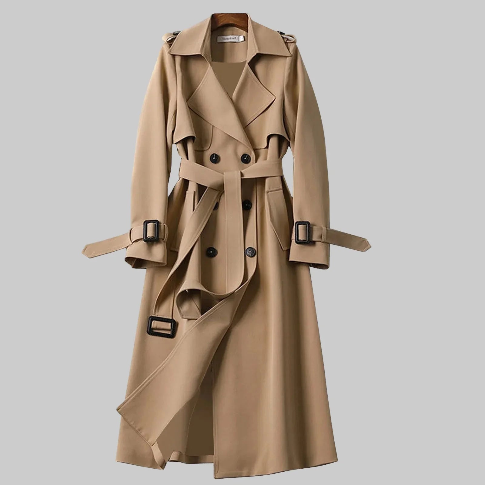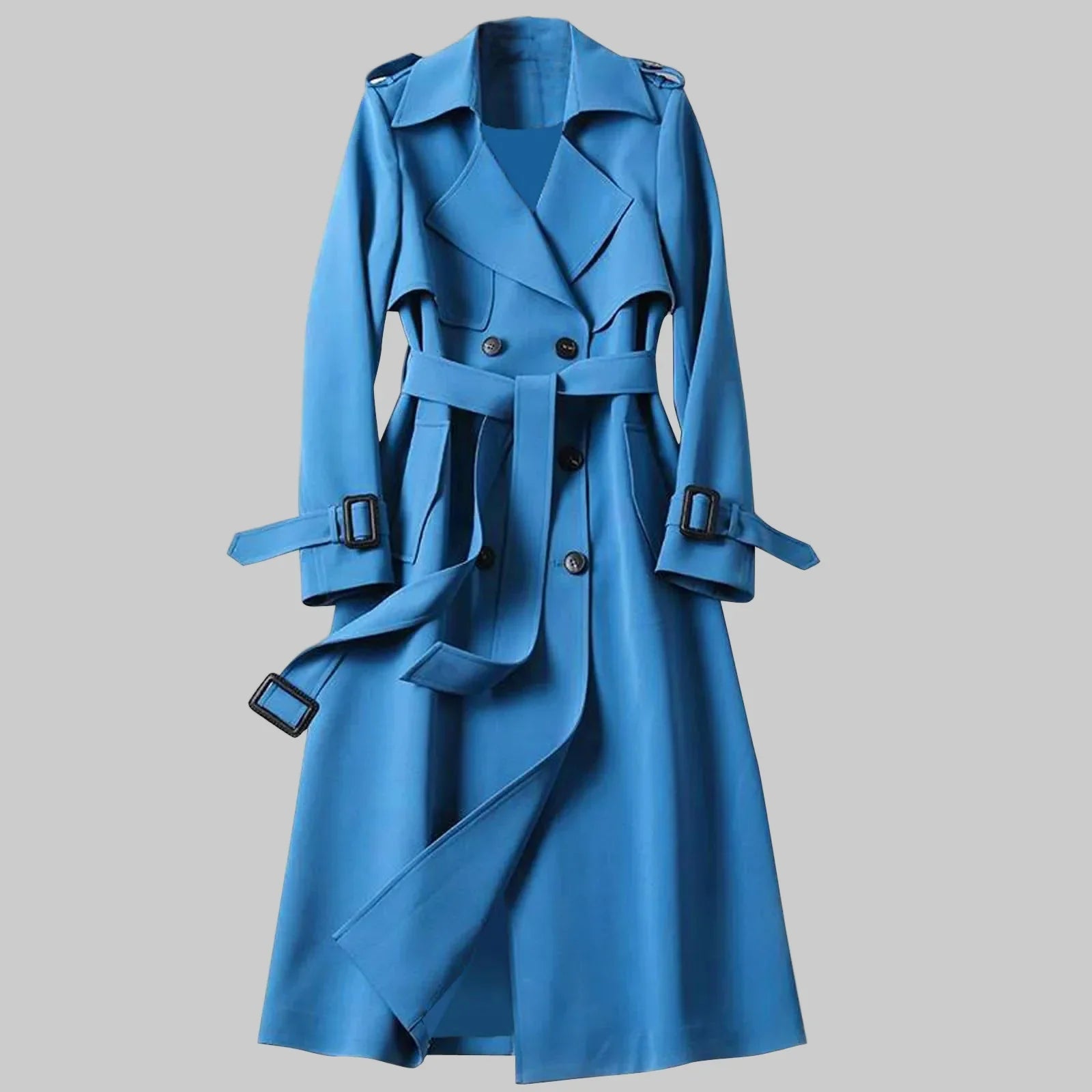 • Klasični i Vječni Dizajn: Dvostruko kopčanje i detalji na ramenima stvaraju ikoničnu siluetu koja je uvijek u modi.